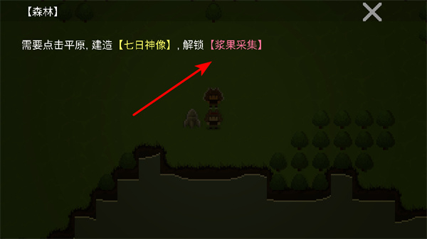 2、根據(jù)提示點(diǎn)擊平原區(qū)域,建造七日神像,這是解鎖新功能如漿果采集的核心操作,建造后可拓展生存與發(fā)展玩法。