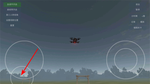 2、操控左側(cè)虛擬搖桿,這是控制無(wú)人機(jī)移動(dòng)的核心操作,通過(guò)搖桿可調(diào)整無(wú)人機(jī)的飛行方向與高度,完成場(chǎng)景探索。
