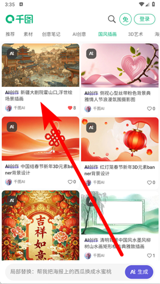 2、在國風(fēng)插畫專區(qū)中,挑選心儀的插畫模板,點擊進(jìn)入其詳情頁面。