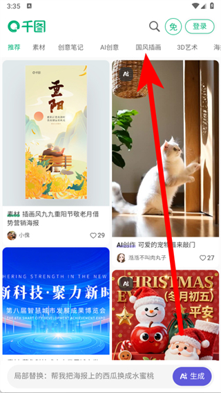 1、打開千圖網(wǎng),點擊頂部國風(fēng)插畫分類標(biāo)簽,進(jìn)入國風(fēng)插畫資源專區(qū)。