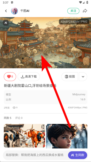 3、在插畫詳情頁,查看插畫的尺寸、創(chuàng)作模型等信息。