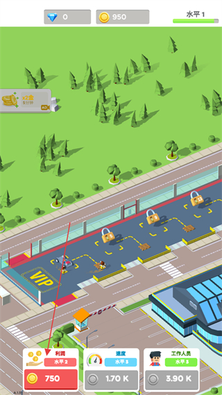 1、在水平1的VIP區(qū)域開展造車業(yè)務(wù),收集初始資源,解鎖施工區(qū)域。