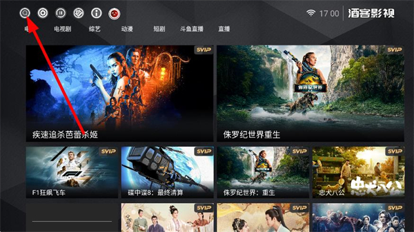 1、在酒客影視的首頁,點(diǎn)擊左上角搜索圖標(biāo),進(jìn)入搜索頁面。