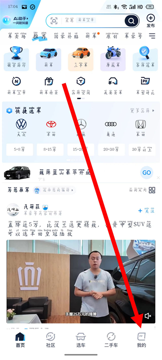 1、打開汽車之家,點(diǎn)擊底部導(dǎo)航欄我的,進(jìn)入個(gè)人中心頁面。