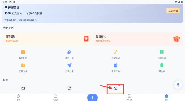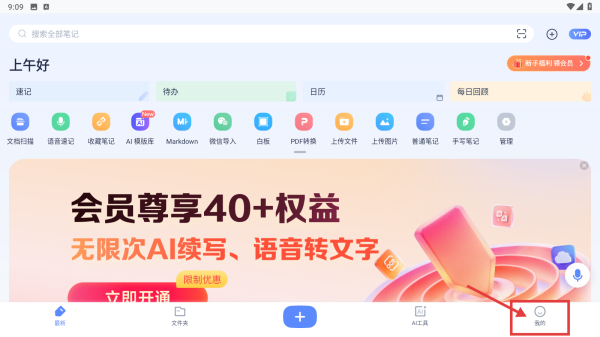 1、打開筆記類應(yīng)用,點(diǎn)擊底部我的選項(xiàng),進(jìn)入個(gè)人中心頁面。