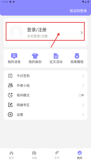 2、在個(gè)人中心頁面,點(diǎn)擊登錄/注冊(cè)選項(xiàng),進(jìn)入登錄界面。