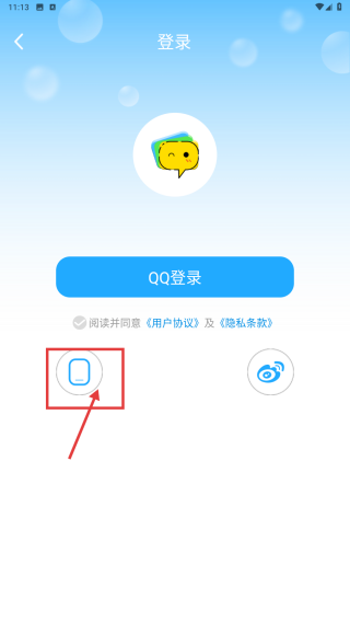 3、在登錄界面,選擇手機(jī)號(hào)登錄入口,進(jìn)入驗(yàn)證碼登錄頁面。