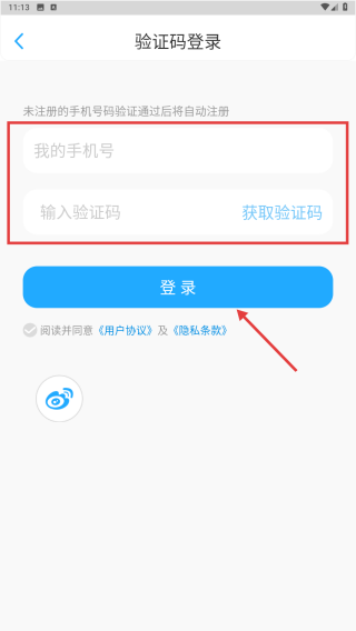 4、在驗(yàn)證碼登錄頁面,輸入手機(jī)號(hào)和驗(yàn)證碼后點(diǎn)擊登錄,完成驗(yàn)證碼登錄操作。
