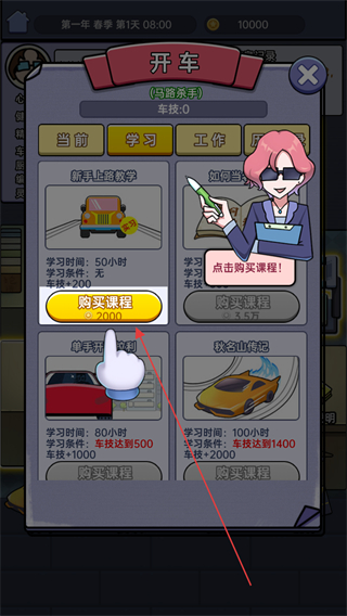 1、在“開車”職業(yè)板塊,購買新手道路教學(xué)課程,開啟學(xué)習(xí)之路,提升車技。