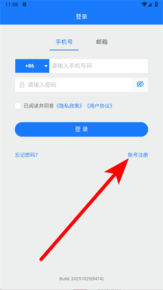 2、在登錄頁面,點(diǎn)擊賬號(hào)注冊(cè),進(jìn)入注冊(cè)流程。