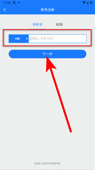 3、在賬號(hào)注冊(cè)頁面,輸入手機(jī)號(hào),點(diǎn)擊下一步。