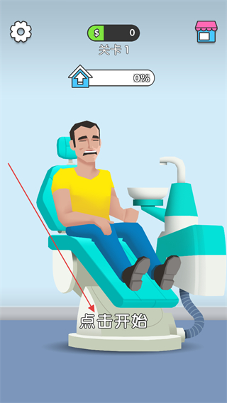 1、點(diǎn)擊點(diǎn)擊開始,進(jìn)入關(guān)卡1,開始為患者治療牙齒。