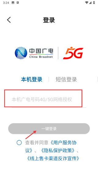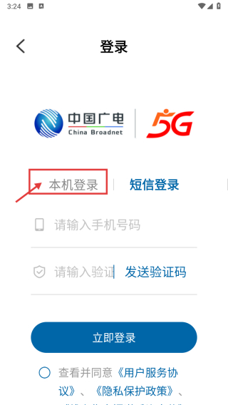 3、在登錄界面,選擇本機(jī)登錄選項(xiàng),準(zhǔn)備進(jìn)行本機(jī)號(hào)碼授權(quán)登錄。