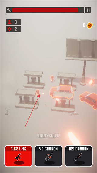 2、持續(xù)射擊,消滅敵方人員,獲得ENEMYKILLED提示,減少敵方數(shù)量。