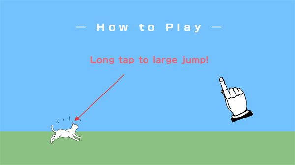 2、通過(guò)點(diǎn)擊屏幕控制貓咪跳躍,長(zhǎng)按屏幕使貓咪跳的更高。