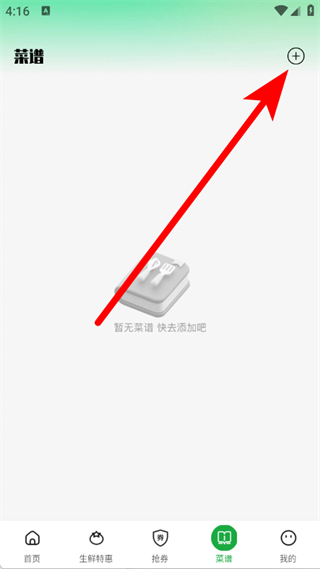 2、在菜譜頁面,點擊右上角+,進(jìn)入添加菜譜頁面。