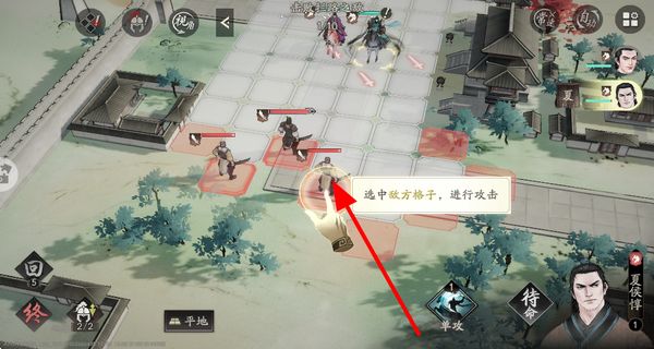 1、選中敵方格子,操控角色在戰(zhàn)棋場景中移動至目標位置,發(fā)起攻擊,以此推進戰(zhàn)斗進程,逐步消滅敵人。