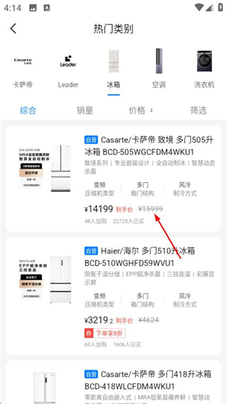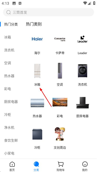 2、在分類頁面,選擇冰箱類別,進入冰箱商品列表頁面。