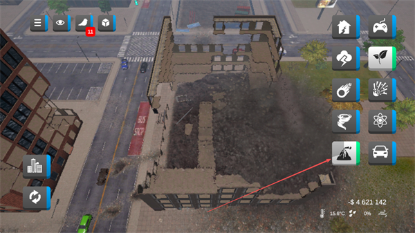 3、切換工具如破壞筆,對建筑結(jié)構(gòu)進行精細(xì)破壞,加速建筑損毀。