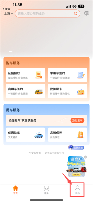 1、打開車管家類APP首頁,點(diǎn)擊底部我的選項(xiàng),進(jìn)入個(gè)人中心頁面。