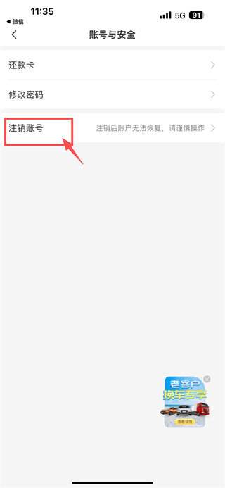 4、在賬號(hào)與安全頁面,點(diǎn)擊注銷賬號(hào)選項(xiàng),完成賬號(hào)注銷操作。