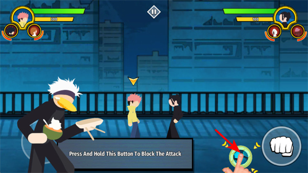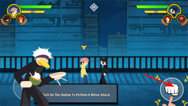2、點(diǎn)擊右側(cè)拳頭按鈕可執(zhí)行近戰(zhàn)攻擊,近戰(zhàn)攻擊是與敵人正面交鋒的主要手段,使用可快速消耗敵人血量。