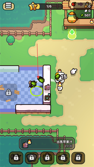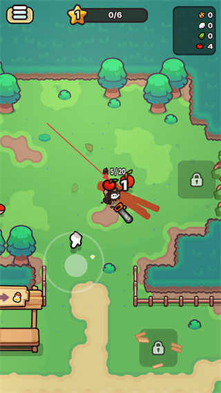 1、首先需要先進(jìn)入森林區(qū)域,切割行走的蘋果從而收集到蘋果塊。