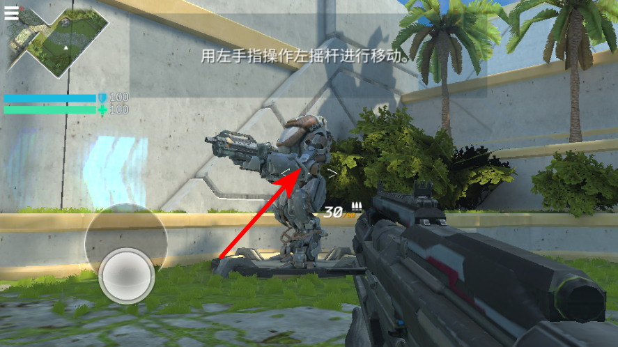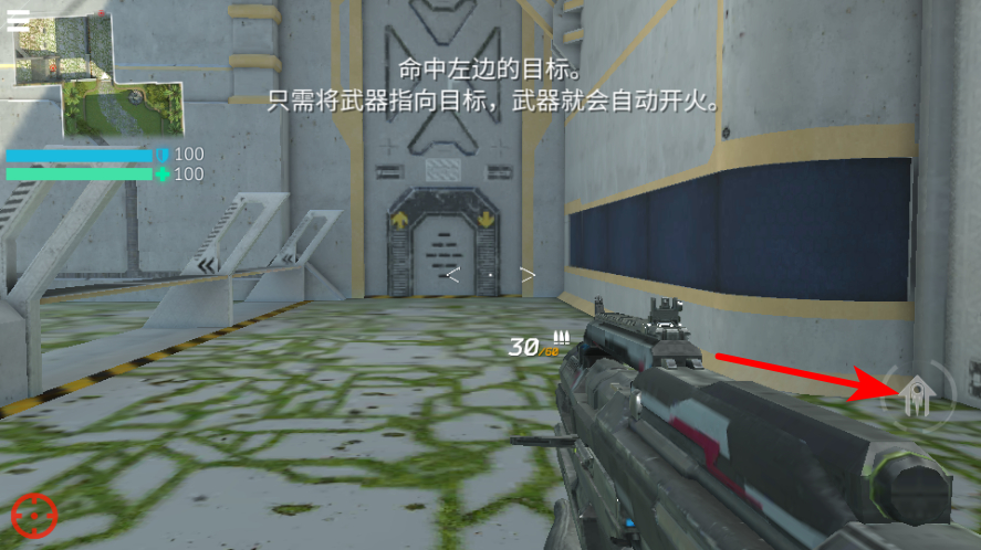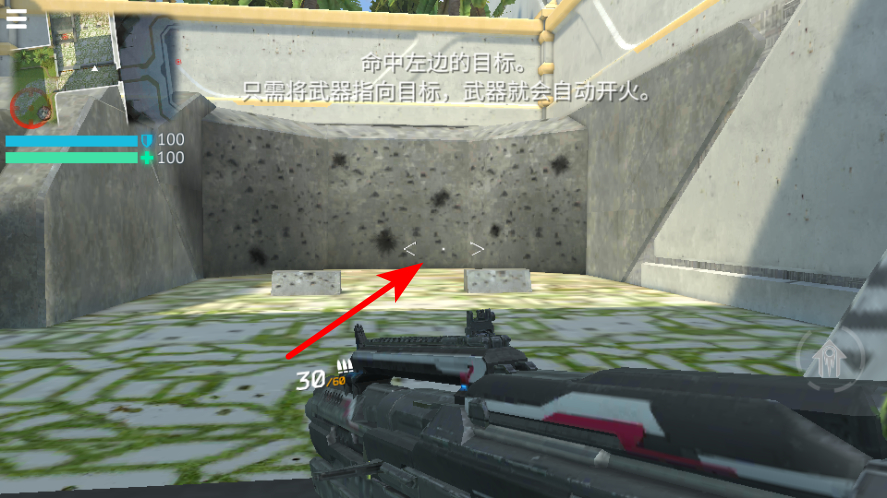 3、將武器指向目標,武器會自動開火,利用這一操作命中左邊目標,消滅敵人或完成射擊任務,推進游戲進程。