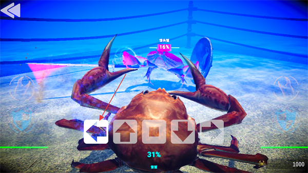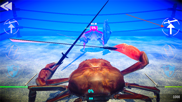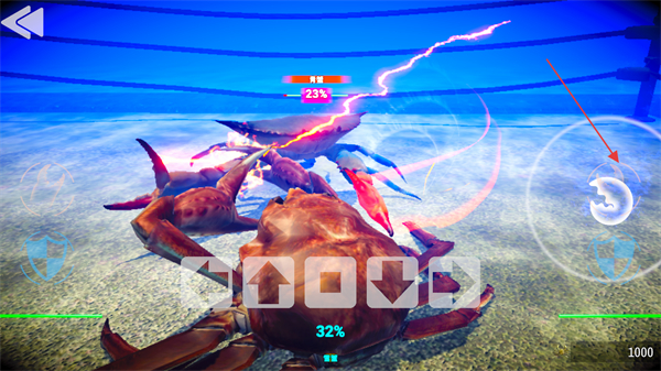 1、通過左右兩邊的紅色蟹鉗按鈕,可以操控兩只蟹鉗夾住對方的軀體進行攻擊。