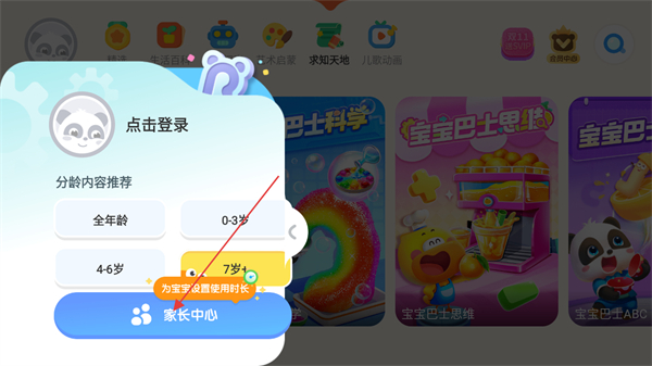 2、點擊右上角的頭像,家長可以設(shè)置寶寶的游戲時間限制。