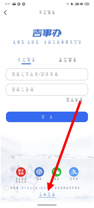 2、在個人登錄頁面,點擊立即注冊,進入注冊頁面。