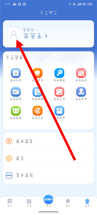 1、打開吉事辦,進入個人中心頁面,點擊請登錄。