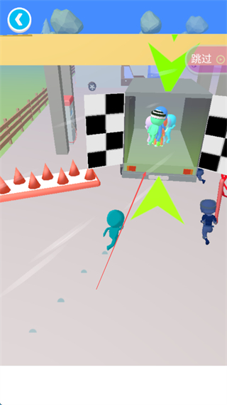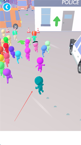 1、操控角色在人群中奔跑,避開障礙物,朝著帶有綠色箭頭的目標(biāo)方向前進(jìn)。