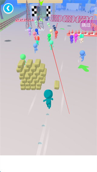 2、在跑道上躲避路障,如石塊堆,沿著路徑?jīng)_向終點(diǎn)區(qū)域。