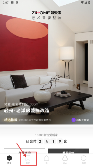 1、打開家裝類APP首頁,點擊底部案例選項,進入案例頁面。