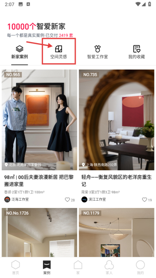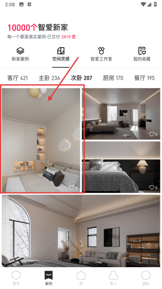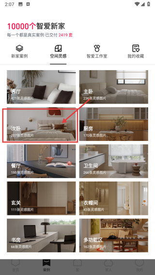 2、在案例頁面,點擊空間靈感板塊,進入空間靈感分類頁面。