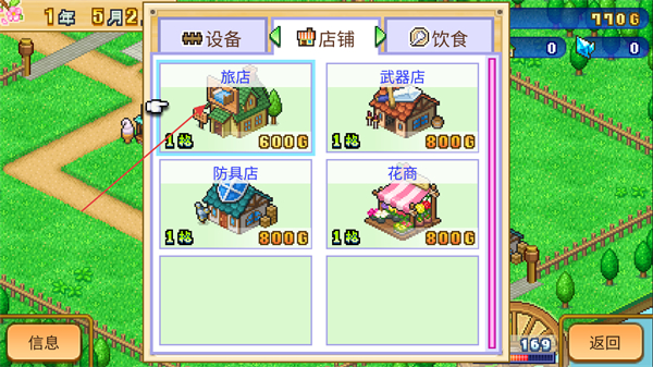 2、在建筑的店鋪中找到旅店,花費600金幣進行購買建筑。