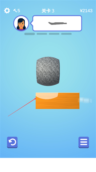 1、選擇關(guān)卡3進入游戲,根據(jù)上方工具形狀提示,操控砂輪打磨橙色木塊。