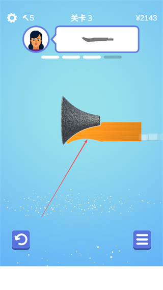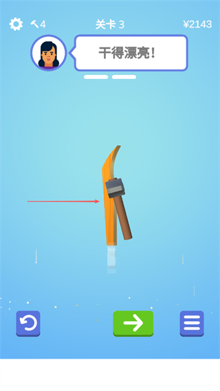 4、打磨完成后,若獲得“干得漂亮”評價,點擊箭頭按鈕進入下一關(guān)。