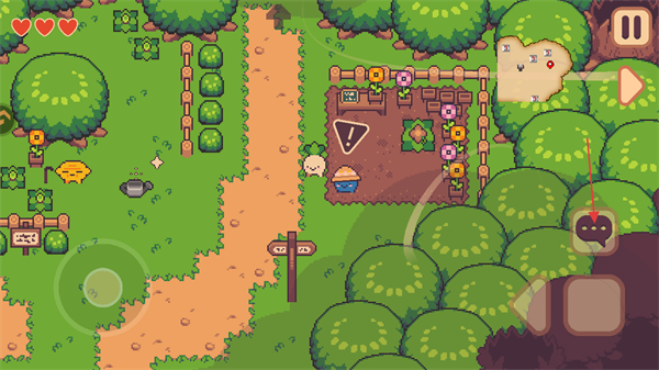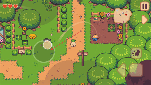 采用萌系像素畫風(fēng)打造場景與角色,大頭菜主角機(jī)靈討喜,蔬菜、水果及動物形象Q萌可愛,色彩鮮亮柔和,營造出輕松治愈又充滿童趣的冒險(xiǎn)氛圍。