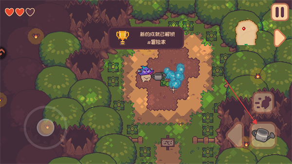 2、遇到土壤中間帶有圖標(biāo)的小草時,可以點(diǎn)擊右下角使用灑水壺進(jìn)行澆水。