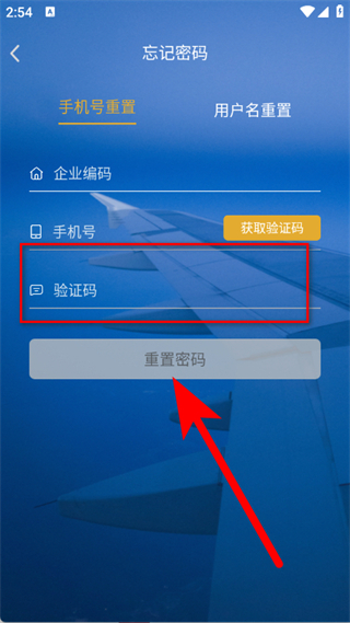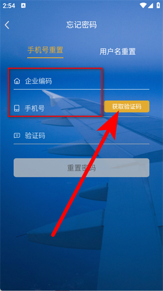 3、在重置頁(yè)面,輸入企業(yè)編碼、手機(jī)號(hào),點(diǎn)擊獲取驗(yàn)證碼。
