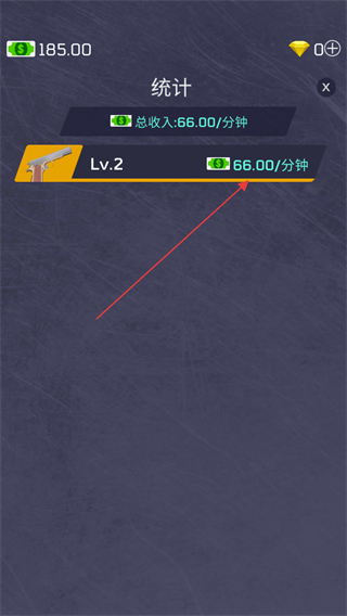 3、在游戲右上角統(tǒng)計(jì)內(nèi),可以看到當(dāng)前軍火的收入情況和工廠等級。