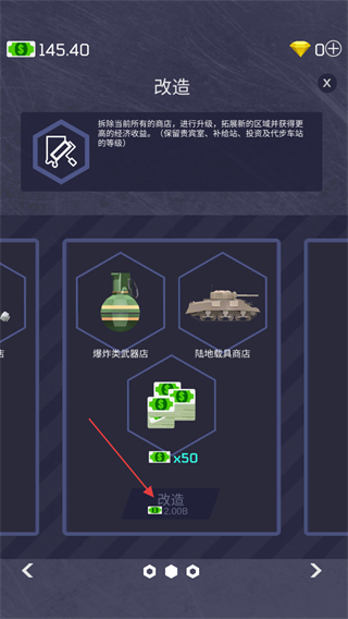 4、當(dāng)前軍火若是經(jīng)營情況不佳可以在改造內(nèi),花費(fèi)貨幣進(jìn)行工廠改造更換商店。