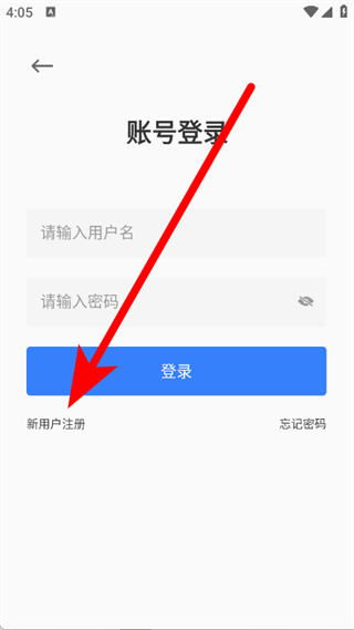 2、在賬號(hào)登錄頁面,點(diǎn)擊新用戶注冊(cè),進(jìn)入新用戶注冊(cè)頁面。