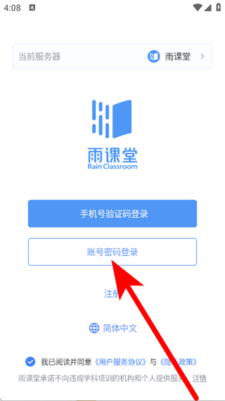 1、在登錄選擇頁(yè)面,點(diǎn)擊賬號(hào)密碼登錄,進(jìn)入密碼登錄頁(yè)面。