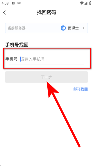 3、在找回密碼頁(yè)面,輸入手機(jī)號(hào),點(diǎn)擊下一步。