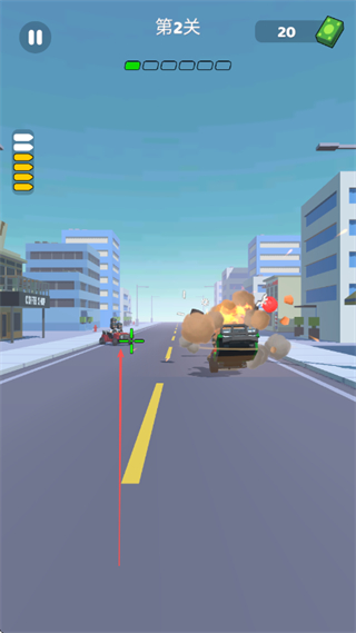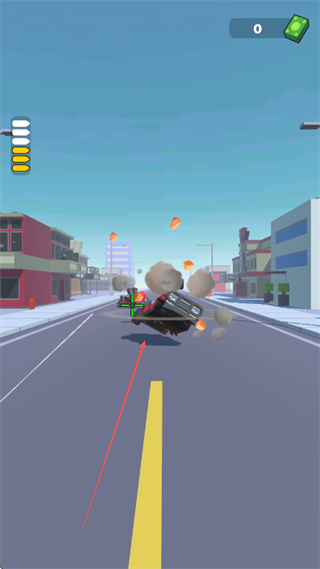 2、在第2關(guān)中,瞄準(zhǔn)敵人車輛進(jìn)行撞擊,消滅敵人,同時躲避攻擊。