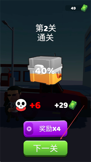 4、通關(guān)后可獲得金幣和分?jǐn)?shù)獎勵,點擊下一關(guān)繼續(xù)挑戰(zhàn),提升通關(guān)進(jìn)度。