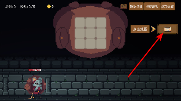 3、點(diǎn)擊地圖,地圖是探索地牢、規(guī)劃路線的重要工具,通過地圖可了解當(dāng)前樓層布局,找到資源點(diǎn)敵人位置。